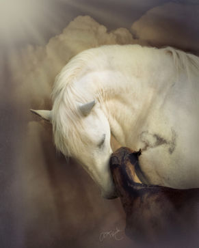 Each piece begins with 2–5 photos that you provide. From those images, I select the clearest likeness and enhance your pet’s features, restoring clarity, detail, and warmth. Then, I gently place them in an angelic setting — soft skies, light-filled meadows, subtle halos, or other symbolic touches to reflect peace and love.